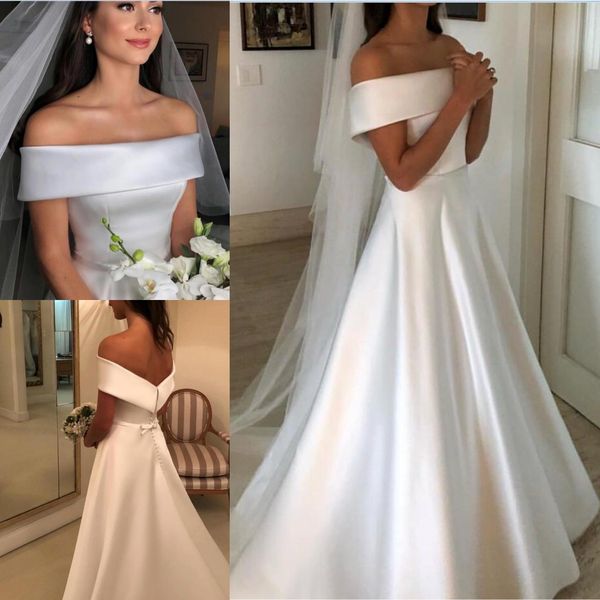 Discount 2019 Modest A Line Wedding Dresses Beach Button Covered