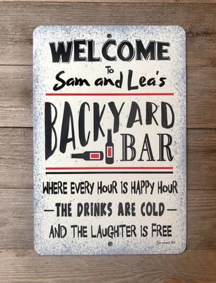 Backyard Bar Metal Sign Personalized 8x12 Pool Sign Bar Sign