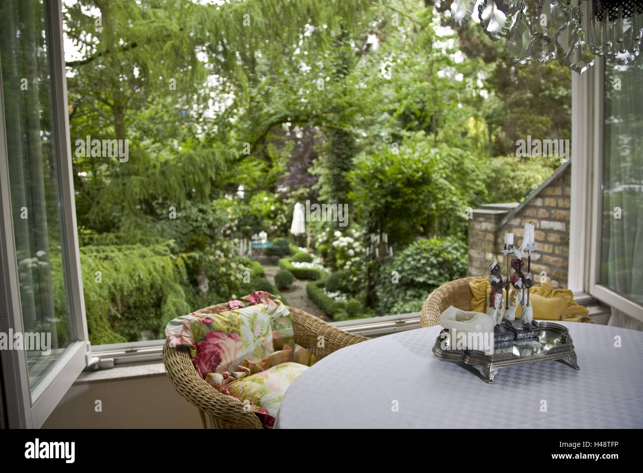 Flat Armchair Table Window Openly View Garden Stock Photo