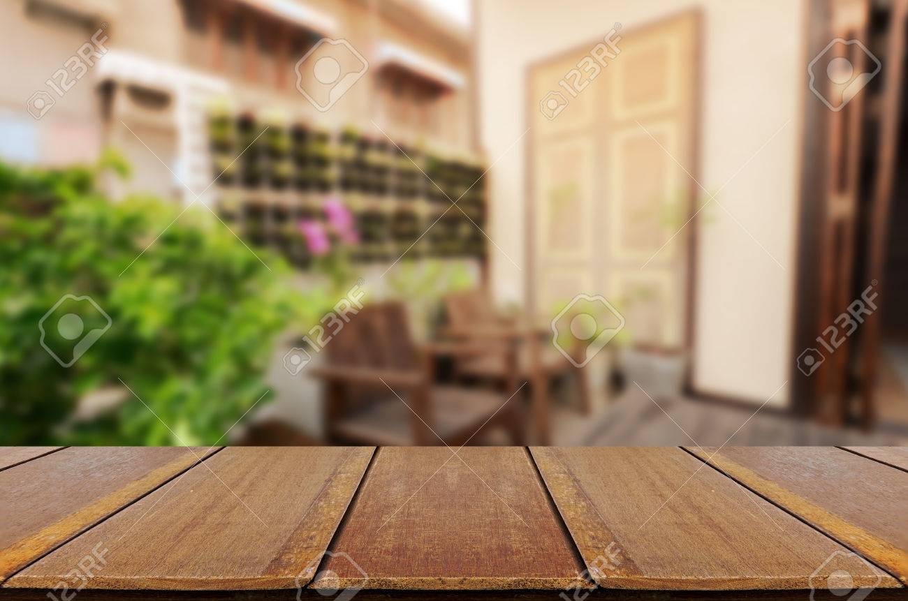Blurred Vintage Backyard Garden Background With Perspective Wood
