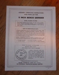 Craftsman Sears 8 Bench Grinder Model 319 190630 Instructions