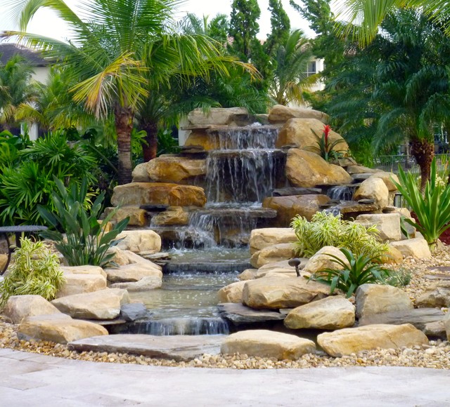Waterfall Backyard Tropical Garden Miami By Matthew