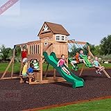 Swing Set Backyard Outside Wooden Swingset Slide Swings Climbing