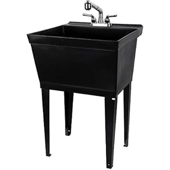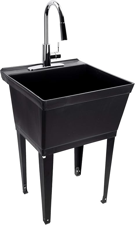 Black Utility Sink Laundry Tub With Pull Out Chrome Faucet